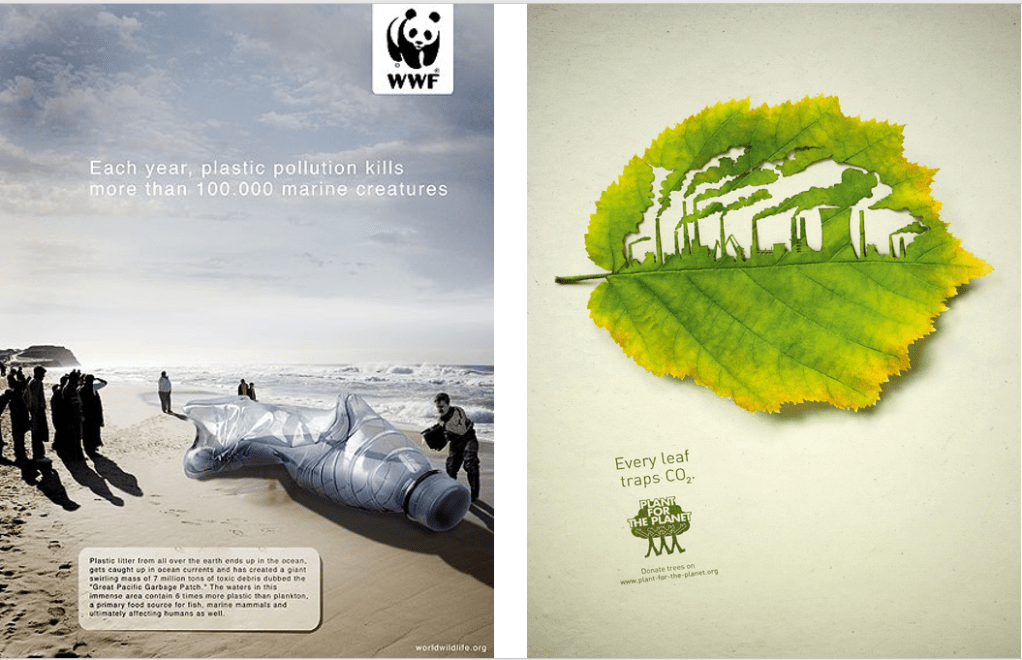 Example of advertisements with good visual appeal by WWF (left) and Plant-for-the-Planet (right)